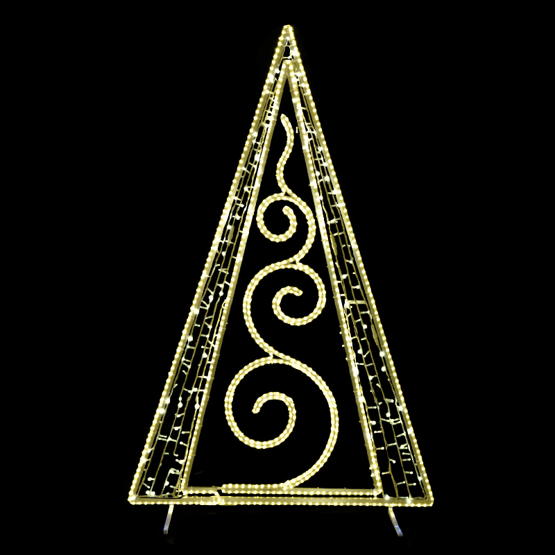Dekorace stromek trojúhelník velký pro vnitřní i venkovní použití kombinace LED kabelu a LED řetězu příkon 85 W výška 212 cm x šířka 135 cm váha 10,2 kg duralová konstrukce osazena LED světelným kabelem, kombinace s LED světelným řetězem Možnosti umístění dekoru: ozdoba sloupu veřejného osvětlení... celý popis