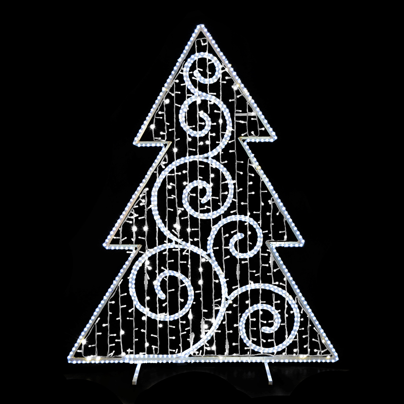 Dekorace stromek velký pro vnitřní i venkovní použití kombinace LED kabelu a LED řetězu příkon 107 W výška 202 cm x šířka 160 cm váha 12,4 kg duralová konstrukce osazena LED světelným kabelem, kombinace s LED světelným řetězem Možnosti umístění dekoru: ozdoba sloupu veřejného osvětlení rovnoběžně... celý popis