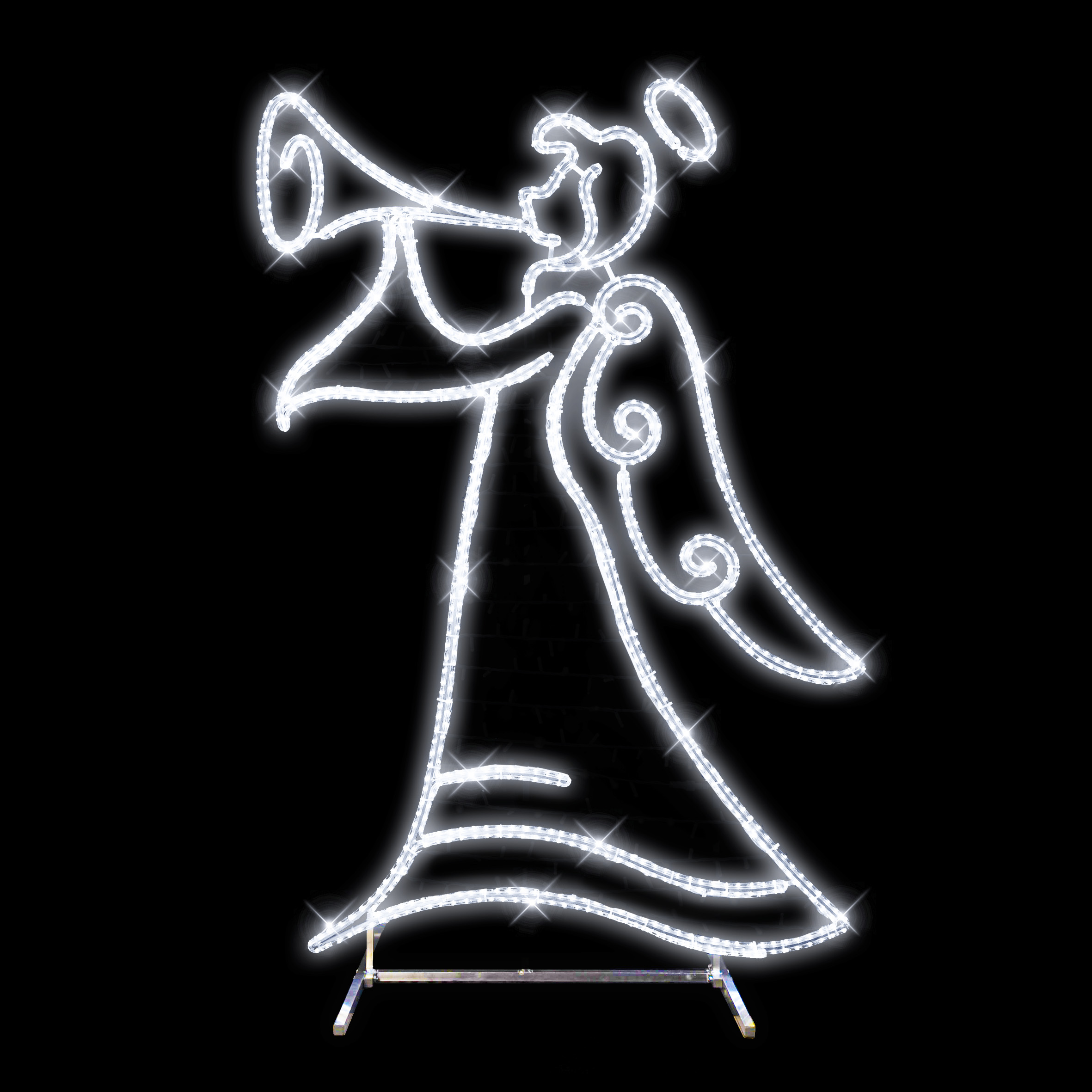 2D LED andělice hrající na trubku je solitér určený k postavení do prostoru.