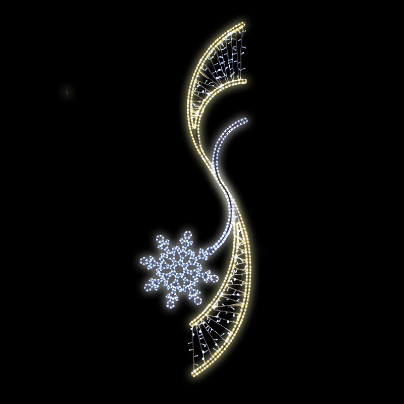 LED dekorace s výpletem a vločkou pro vnitřní i venkovní použití kombinace LED kabelu a LED řetězu příkon 85 W výška 300 cm x šířka 94cm váha 9,2 kg duralová konstrukce osazena LED světelným kabelem, kombinace s LED světelným řetězem Možnosti umístění dekoru: ozdoba sloupu veřejného osvětlení - r... celý popis