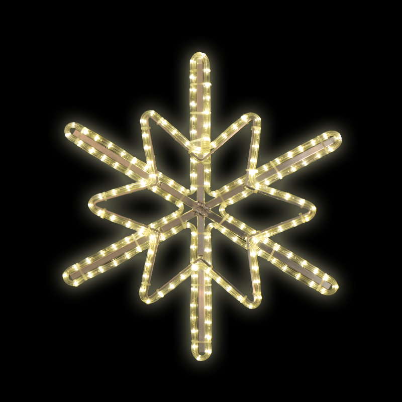 Hvězda s vločkou malá LED dekorace Kompletní specifikace dekoru: pro vnitřní i venkovní použití LED kabel příkon 18 W výška 61 cm x šířka 60 cm váha 1,8 kg duralová konstrukce osazena LED světelným kabelem, kombinace s LED světelným řetězem Možnosti umístění dekoru: ozdoba sloupu veřejného osvětl... celý popis