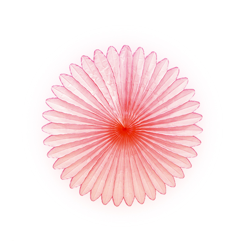 Papírová květina v pestrých barvách, určená k zavěšení. Lehká skládaná dekorace, snadná manipulace i skladování. Povrch papíru je speciálně upraven a splňuje normu nehořlavosti v kategorii M1 (B).