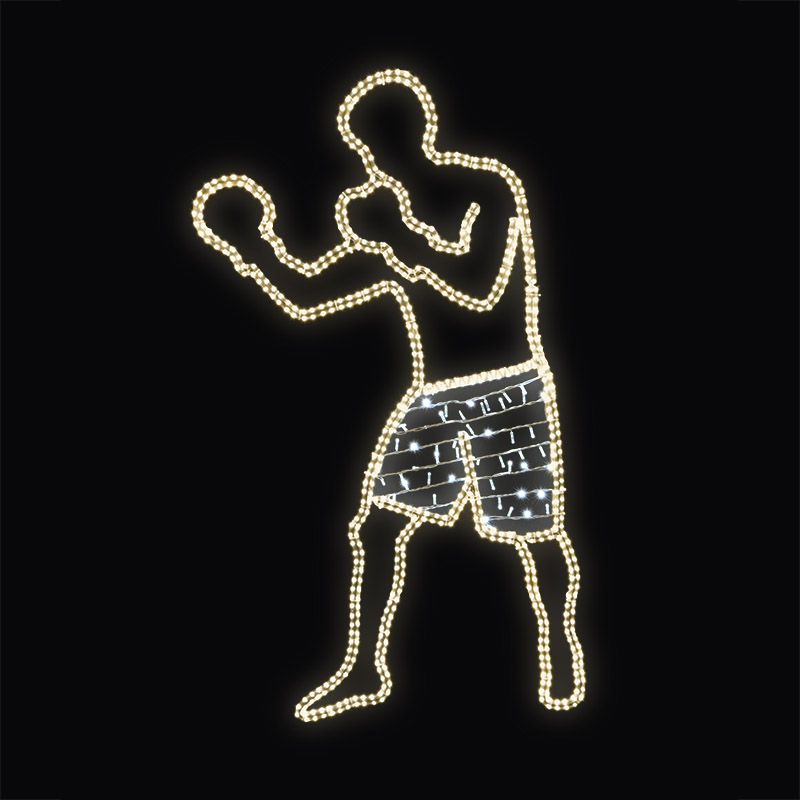 Boxer LED dekor pro vnitřní i venkovní použití příkon 67 W, s výpletem 71 W výška 195 x šířka 116 cm váha 7,2 kg, s výpletem 7,7 kg duralová konstrukce osazena LED světelným kabelem, výplet z LED světelného řetězu Možnosti (varianty) doplnění: barevné varianty dekoru Možnosti umístění dekoru: o... celý popis