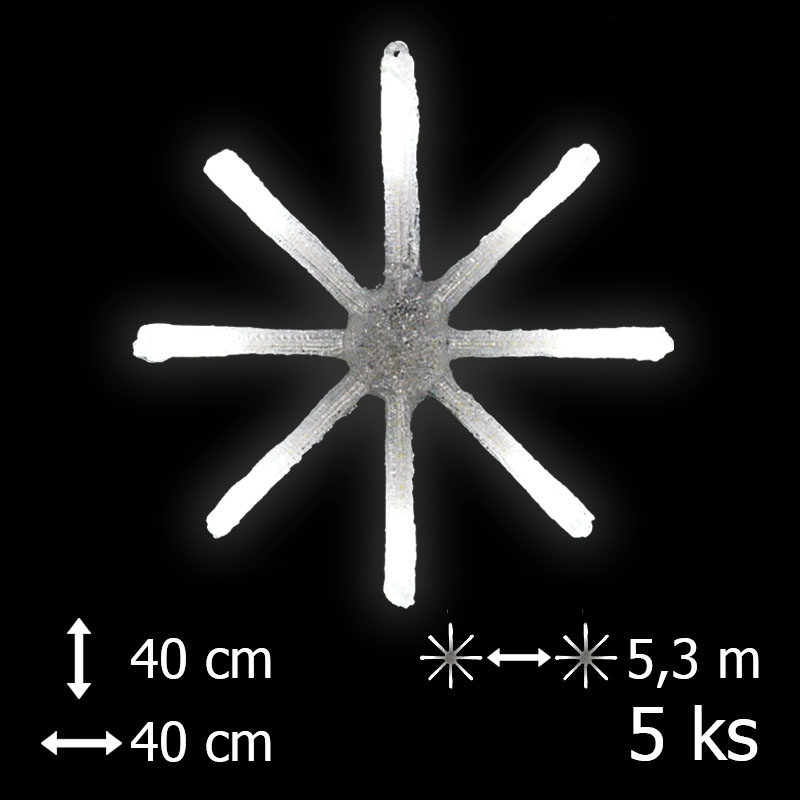 LED sada na strom OS-Snowfall crystal vločka SB 40 cm - 5 ks, rozteč 5 m