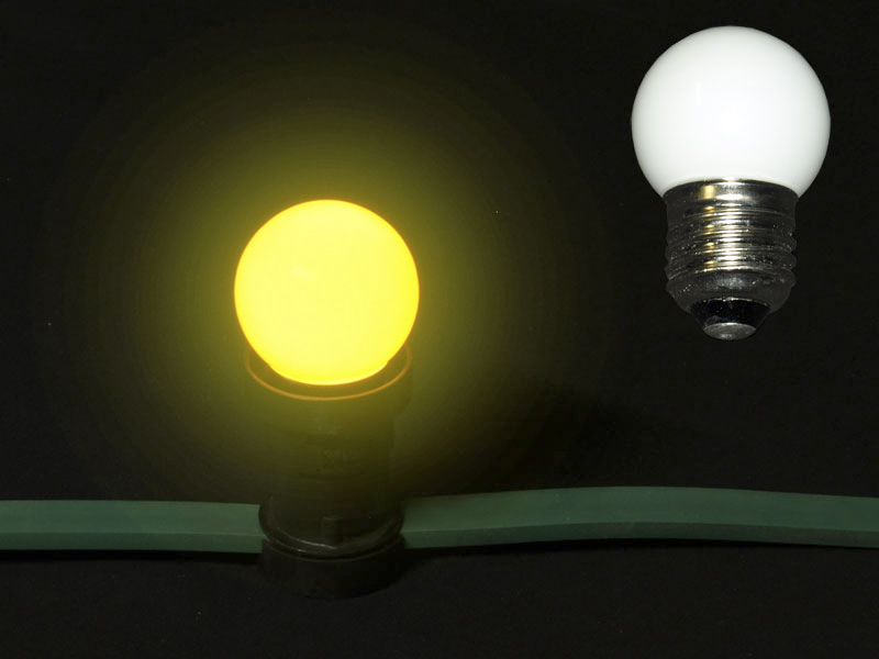 - LED žárovka G45-1W-E27, žlutá