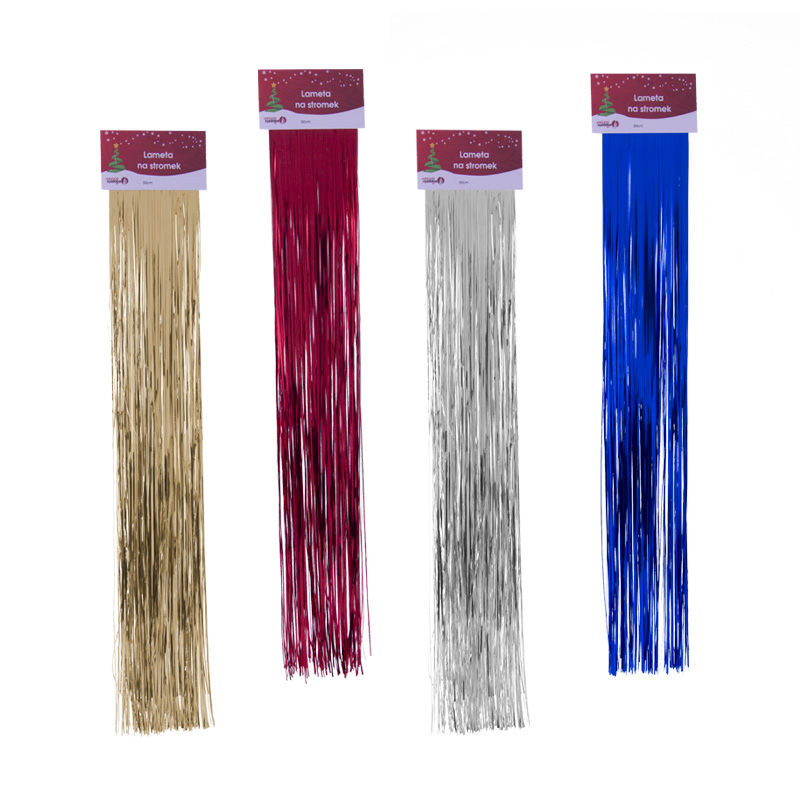 PVC lameta, délka 100 cm, barva zlatá, stříbrná, červená a modrá