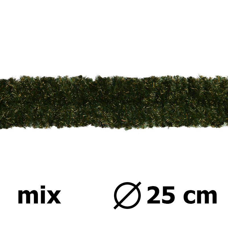 PVC girlanda, barva zeleno-zlatá, průměr 25cm, délka 2,7m, počet větví 360, počet větví na 1m je 133