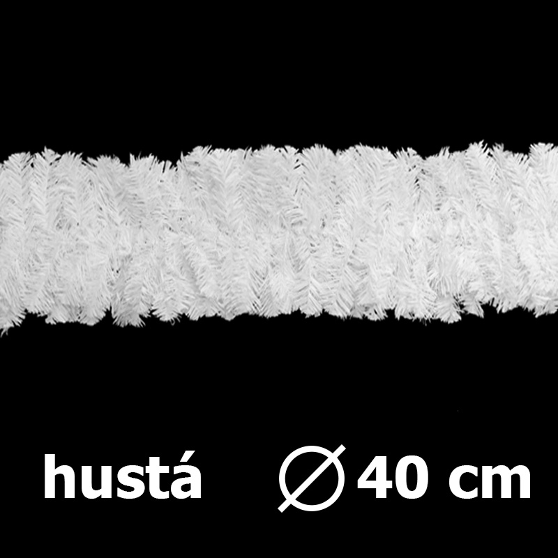 PVC girlanda, barvy: zelený smrk, svatební bílá, průměr 40cm, délka 2,7m, počet větví 540, počet větví na 1m je 200