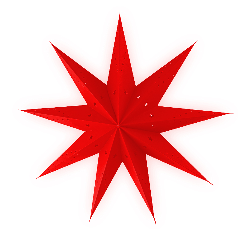 Papírová hvězda devíticípá 35 cm hvězda 9 cípá průměr 35 cm průřezy ve tvaru hvězd materiál: papír možnost výběru barev: bílá, modrá, červená, holografická zlatá celý popis