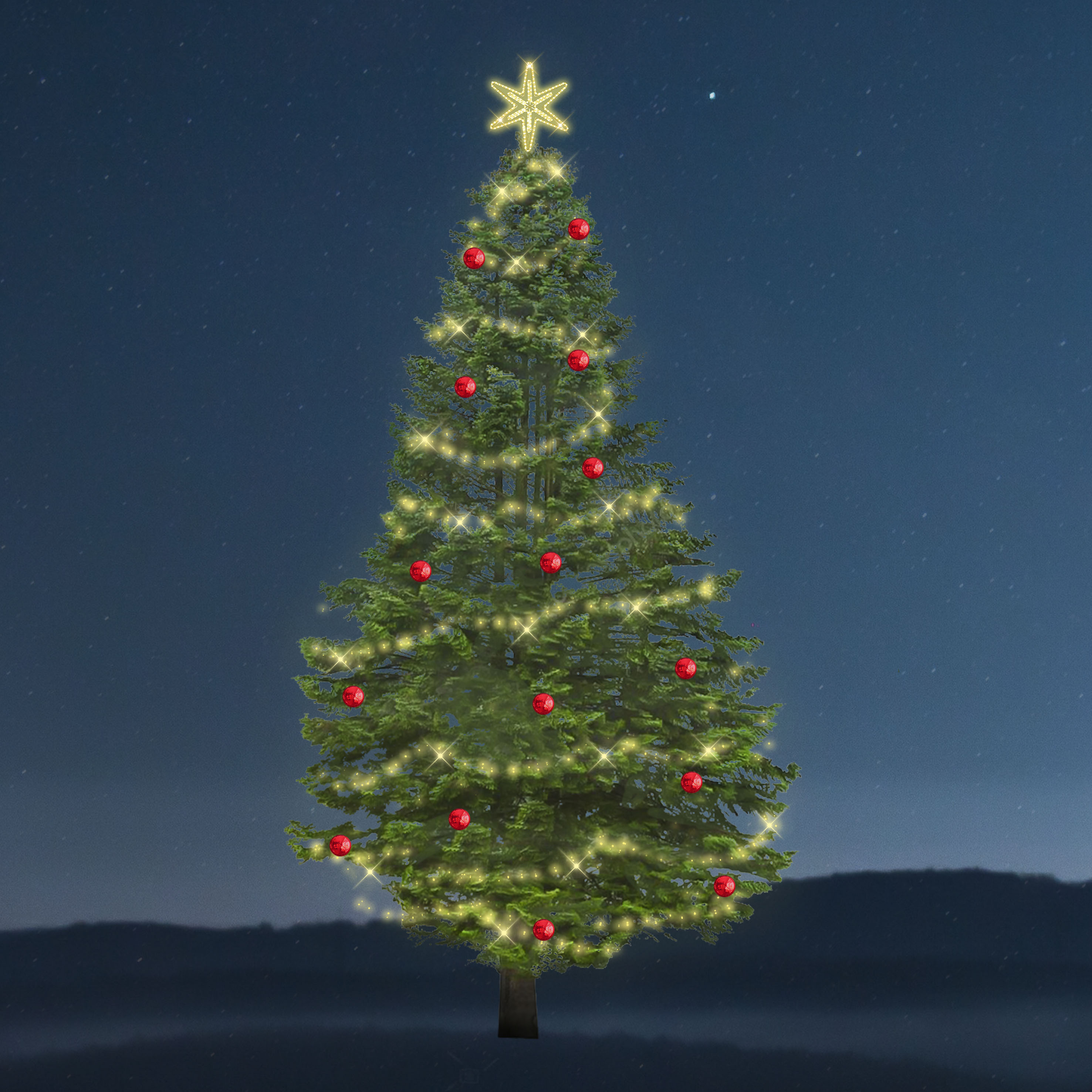 Vánoční sada osvětlení na stromy "Classic" (1248 LED) v příjemném tónu stále svítících řetězů teplé bílé barvy. Na výběr jsou barevné varianty koulí. Celková spotřeba 94 W.