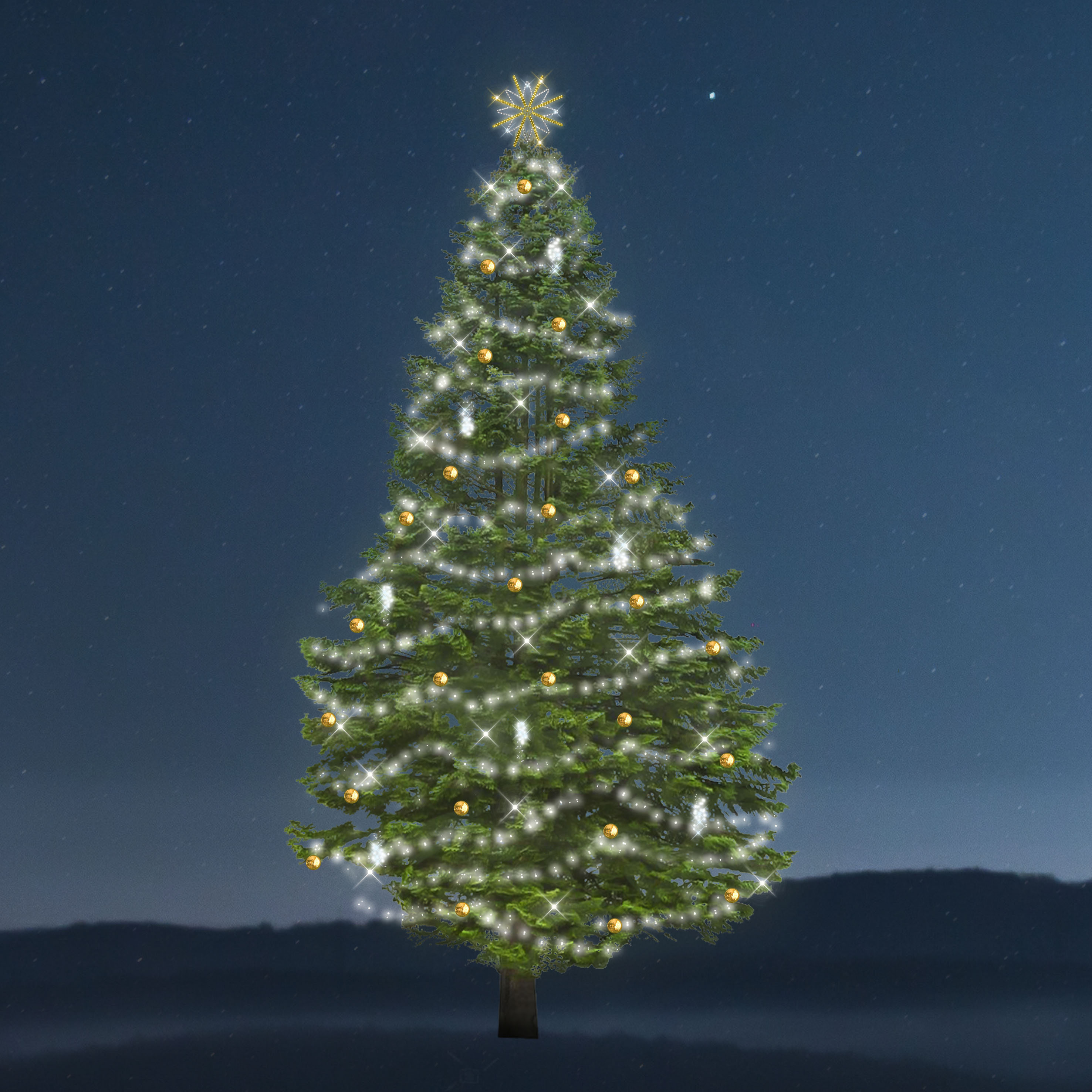 Vánoční sada osvětlení na stromy Romantic - Snowdrop (3354 LED) efektem, který vytváří jemný romantický třpyt. Řetězy jsou v barvě studené bílé. Doplněno řetězy Snowdrop, LED padajícím světlem studené bílé barvy, které vytváří efekt padajícího sněhu. Na výběr barevné varianty koulí. Celková spotřeba 305,5 W.