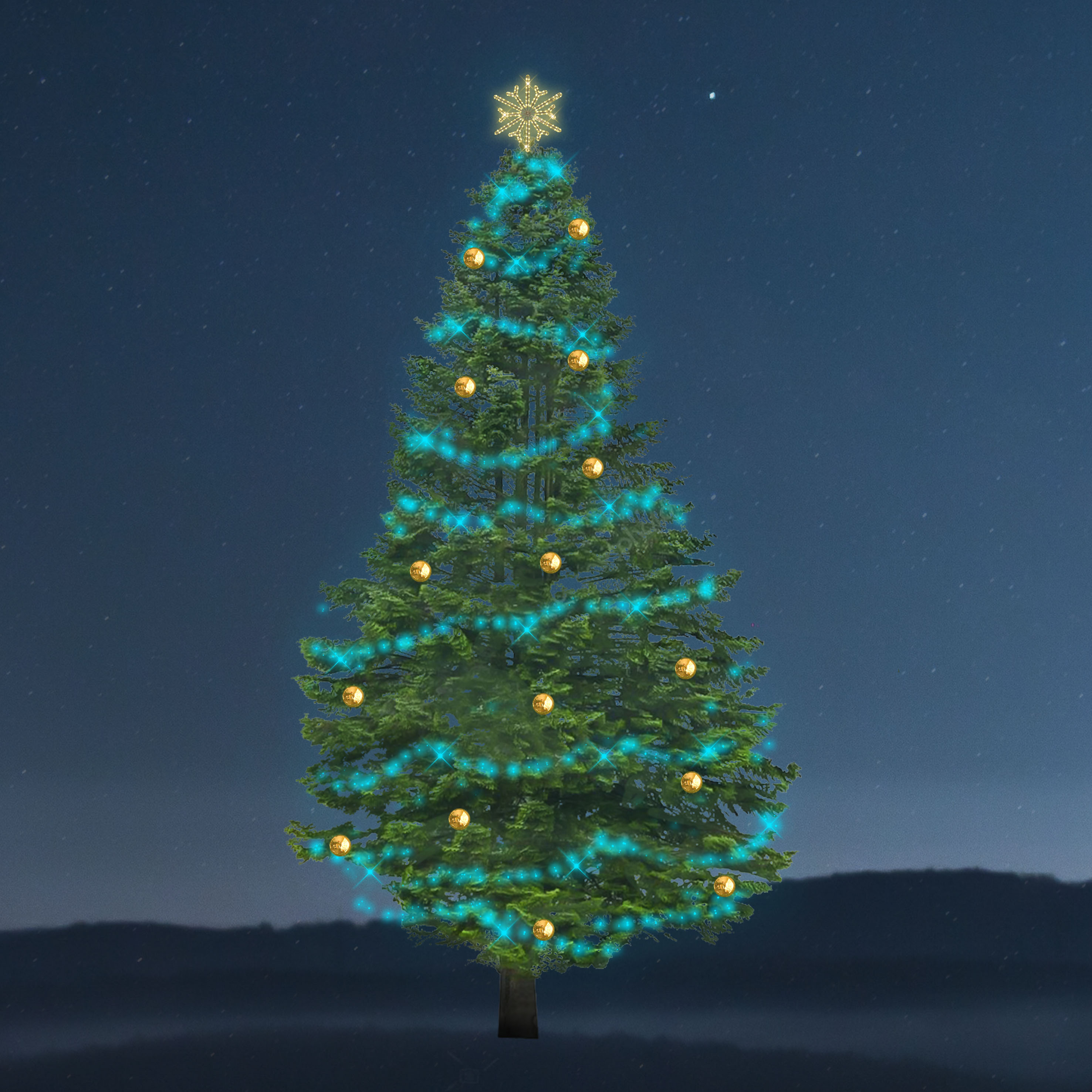 Vánoční sada osvětlení na stromy Synchrone (1180 LED) s řetězy, které využívají GPS signál k ovládání efektů a barev. Přijímač je součástí světelného řetězu a každý družicový signál umožní spouštět nastavené činnosti světla. Pro správnou funkčnost je potřeba umístit GPS modul ve venkovních prostorách na dosah družicového signálu (spojitelné 7 ks na 1 GPS modul). Nelze měnit barvu, rychlosti ani pořadí efektů. Barva řetězu je RGB. Na výběr barevné varianty koulí. Celková spotřeba 112 W.