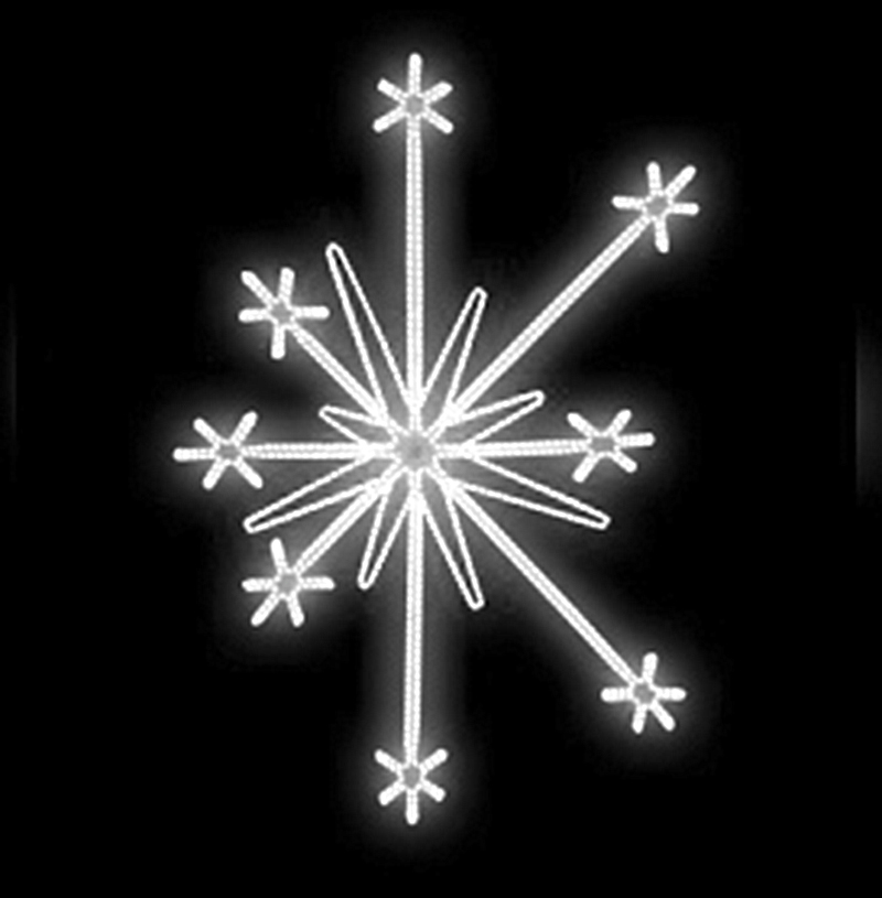Světelný Dekor vločka LED 5701 pro vnitřní i venkovní použití 2 barvy světelného LED kabelu příkon 102 W výška 255 x šířka 168 cm váha 8,4 kg Možnosti (varianty) doplnění: barevné varianty dekoru výplet z LED řetězů Možnosti umístění dekoru: ozdoba sloupu veřejného osvětlení - rozteč 1 m - potř... celý popis