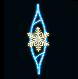 Světelný Dekor s vločkou LED 5821 pro vnitřní i venkovní použití 2 barvy světelného LED kabelu příkon 98 W výška 306 x šířka 100 cm váha 9,6 kg duralová konstrukce osazena LED světelným kabelem Možnosti (varianty) doplnění: barevné varianty dekoru výplet z LED řetězů Možnosti umístění dekoru: ... celý popis