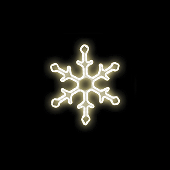 Světelný dekor Vločka šesticípá pro vnitřní i venkovní použití 2 barvy světelného LED kabelu příkon 14 W výška 53 x  šířka 48 cm váha 2,6 kg duralová konstrukce osazena LED světelným kabelem Možnosti (varianty) doplnění: barevné varianty dekoru Možnosti umístění dekoru: ozdoba sloupu veřejného ... celý popis