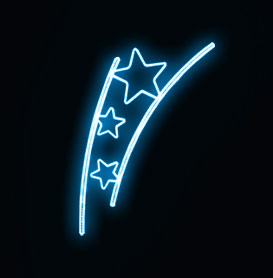 Světelný dekor Dvě tyče s hvězdami malý Kompletní specifikace dekoru: pro vnitřní i venkovní použití 2 barvy světelného LED kabelu příkon 35 W výška 170 x šířka 100 cm váha 4,6 kg duralová konstrukce osazena LED světelným kabelem Možnosti (varianty) doplnění: barevné varianty dekoru Možnosti um... celý popis
