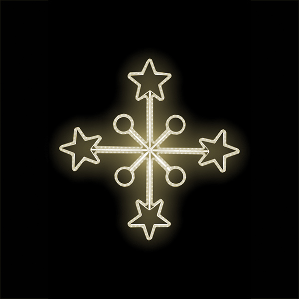 Světelný dekor Hvězda 4 cípá s kuličkami Kompletní specifikace dekoru: pro vnitřní i venkovní použití příkon 32 W výška 133 x šířka 128 cm váha 4 kg duralová konstrukce osazena LED světelným kabelem Možnosti (varianty) doplnění: barevné varianty dekoru Možnosti umístění dekoru: ozdoba sloupu ve... celý popis