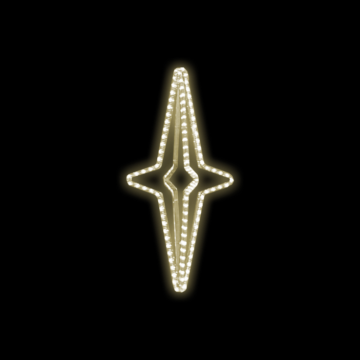Světelný dekor Hvězda Orion velká 3D pro vnitřní i venkovní použití příkon 14 W výška 84 x šířka 40 cm váha 1,6 kg duralová konstrukce osazena LED světelným kabelem Možnosti (varianty) doplnění: barevné varianty dekoru Možnosti umístění dekoru: ozdoba sloupu veřejného osvětlení - potřeba 1 úchy... celý popis