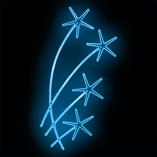 Světelný dekor Hvězdné květiny pro vnitřní i venkovní použití příkon 84 W výška 300 x šířka 145 cm váha 9,1 kg duralová konstrukce osazena LED světelným kabelem Možnosti (varianty) doplnění: barevné varianty dekoru Možnosti umístění dekoru: ozdoba sloupu veřejného osvětlení – rozteč 1 m - potře... celý popis