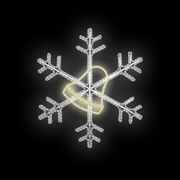 Světelný dekor Vločka se zvonkem pro vnitřní i venkovní použití 2 barvy světelného LED kabelu příkon 42 W výška 107 x šířka 100 cm váha 3,9 kg  duralová konstrukce osazena LED světelným kabelem Možnosti (varianty) doplnění: barevné varianty dekoru Možnosti umístění dekoru: ozdoba sloupu veřejné... celý popis
