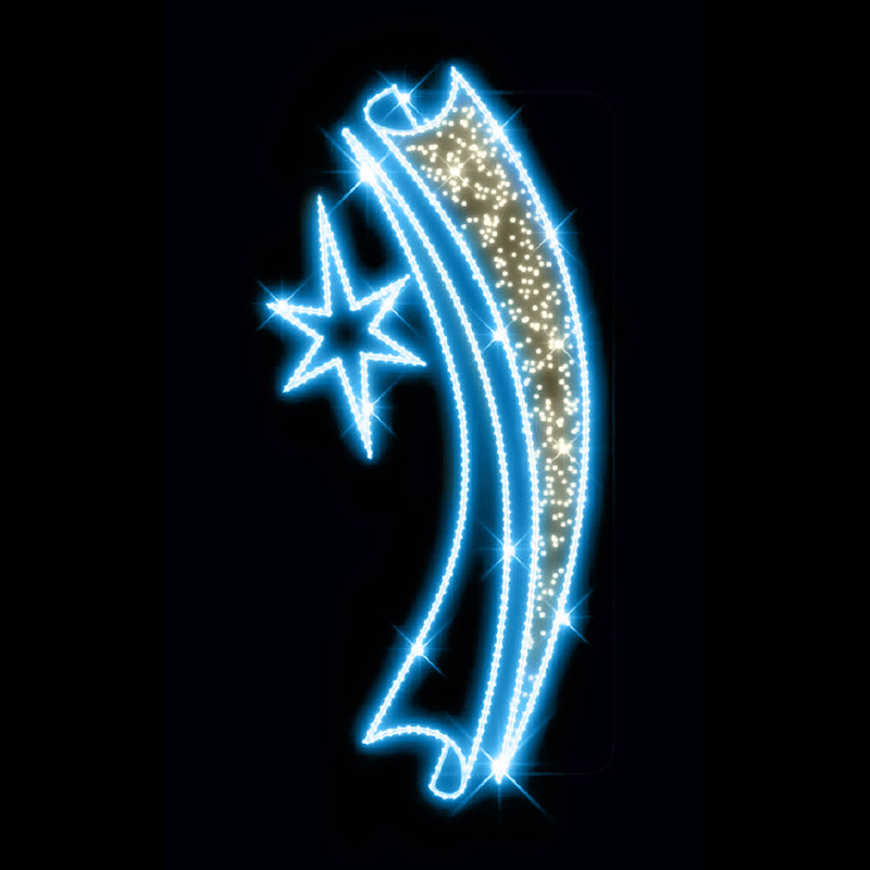 Světelný Dekor Srolovaná látka s hvězdou pro vnitřní i venkovní použití 2 barvy světelného LED kabelu (řetězu) příkon 68 W výška 265 x šířka 127 cm váha 9,4 kg duralová konstrukce osazena LED světelným kabelem, výplet, kombinace LED kabel a LED řetěz Možnosti (varianty) doplnění: barevné varianty... celý popis