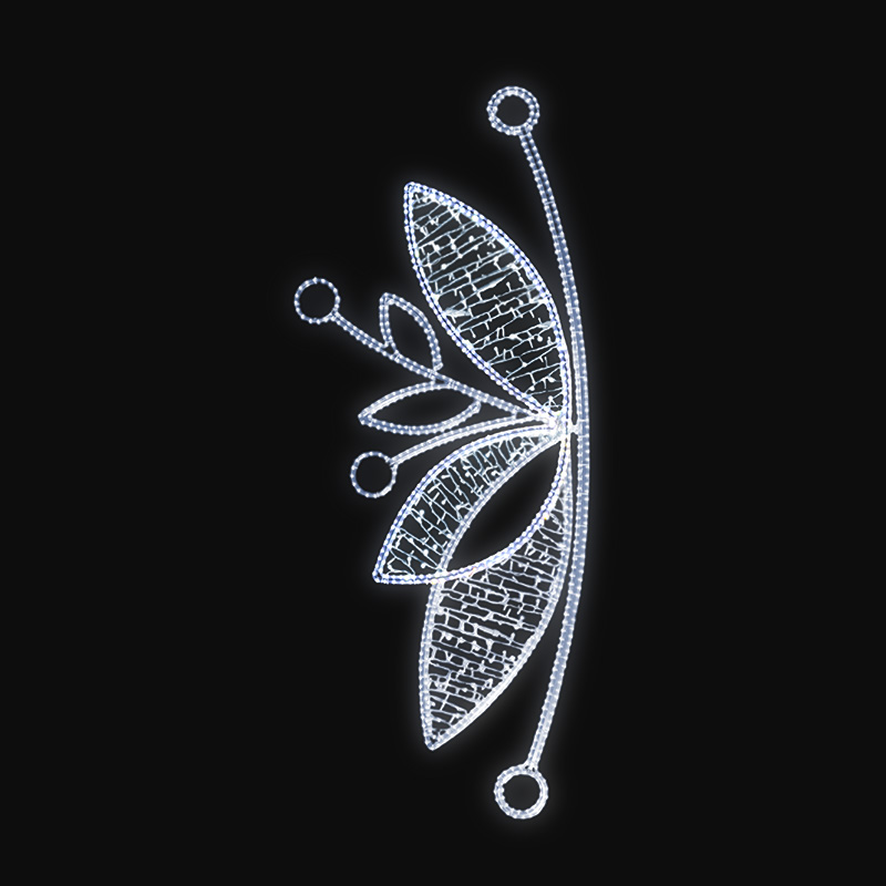 Světelný Dekor Půlkvět velký pro vnitřní i venkovní použití 2 barvy světelného LED kabelu příkon 102 W výška 268 x šířka 108 cm váha 10,6 kg duralová konstrukce osazena LED světelným kabelem, výplet z LED světelného řetězu  Možnosti (varianty) doplnění: barevné varianty dekoru výplet z LED řetěz... celý popis