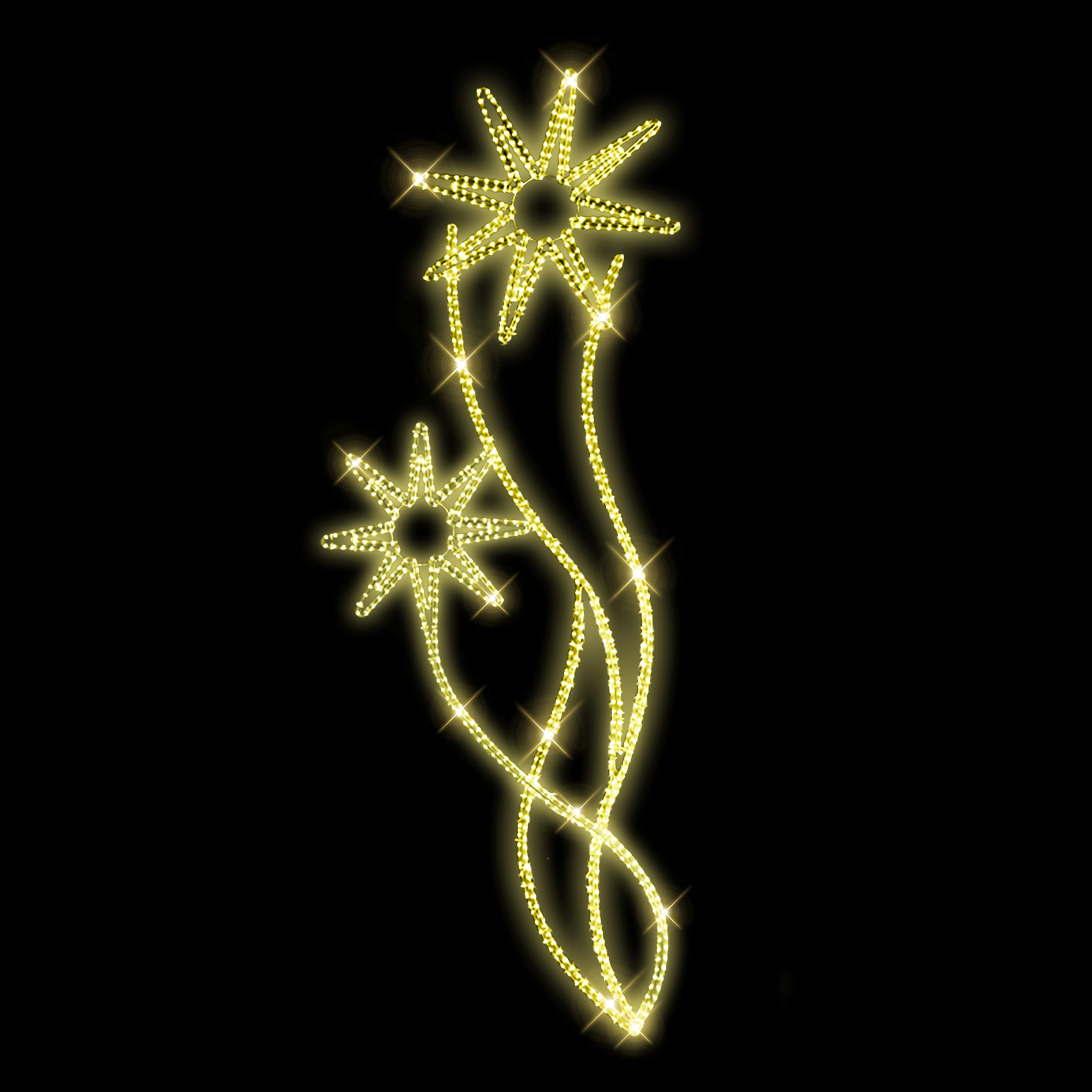 Světelný Dekor hvězdy ve vlnách s výpletem LED 1191 pro vnitřní i venkovní použití 2 barvy světelného LED kabelu příkon 95 W, s výpletem 106 W váha 8,6 kg, s výpletem 10,2 kg výška 269 x šířka 102 cm duralová konstrukce osazena LED světelným kabelem, výplet z LED světelného řetězu Možnosti (varian... celý popis