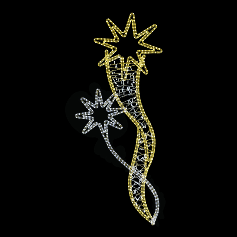 Světelný Dekor hvězdy ve vlnkách s výpletem LED 1192 pro vnitřní i venkovní použití 2 barvy světelného LED kabelu příkon 63 W, s výpletem 71 W váha 5,8 kg, s výpletem 6,6 kg výška 185 x šířka 77 cm duralová konstrukce osazena LED světelným kabelem, výplet z LED světelného řetězu Možnosti (varianty... celý popis