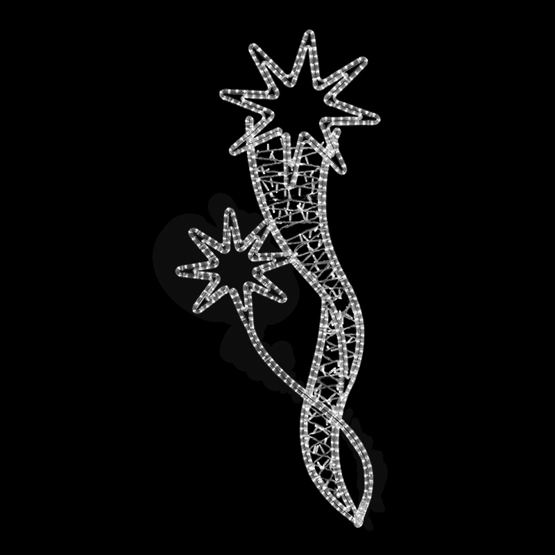 Světelný Dekor hvězdy ve vlnkách s výpletem LED 1192 pro vnitřní i venkovní použití 2 barvy světelného LED kabelu příkon 63 W, s výpletem 71 W váha 5,8 kg, s výpletem 6,6 kg výška 185 x šířka 77 cm duralová konstrukce osazena LED světelným kabelem, výplet z LED světelného řetězu Možnosti (varianty... celý popis