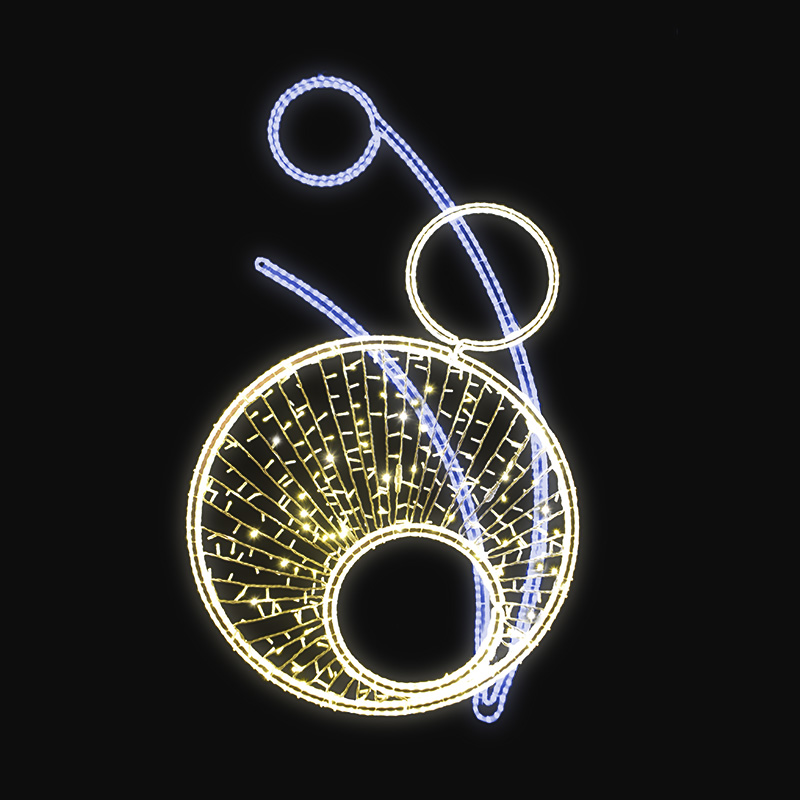 Světelný Dekor kruh s výpletem LED 1061 pro vnitřní i venkovní použití příkon 103 W výška 210 x šířka 122 cm váha 10,8 kg duralová konstrukce osazena LED světelným kabelem, výplet z LED světelného řetězu  Možnosti (varianty) doplnění: barevné varianty dekoru výplet z LED řetězů Možnosti umístěn... celý popis