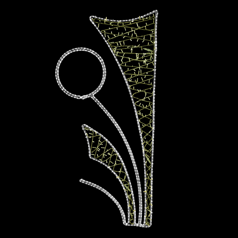 • duralová konstrukce osazena LED světelným kabelem, výplet z LED světelného řetězu nebo akrylátová vsadka nebo gravírovaná vsadka s motivem