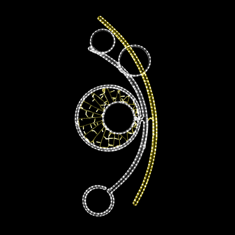Světelný Dekor s výpletem LED 1013 - 165 x 69 cm pro vnitřní i venkovní použití 2 barvy světelného LED kabelu příkon 53 W výška 165 x šířka 69 cm váha 5,6 kg duralová konstrukce osazena LED světelným kabelem, výplet z LED světelného řetězu  Možnosti (varianty) doplnění: barevné varianty dekoru vý... celý popis