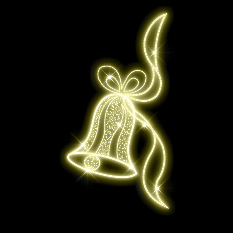 Světelný Dekor Zvonek s mašlí LED 1091 pro vnitřní i venkovní použití 2 barvy světelného LED kabelu příkon 137 W výška 266 x šířka 144 cm váha 11,4 kg duralová konstrukce osazena LED světelným kabelem, výplet z LED světelného řetězu   Možnosti (varianty) doplnění: barevné varianty dekoru výplet ... celý popis