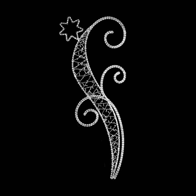 Světelný Kroucený dekor do špičky střední s výpletem pro vnitřní i venkovní použití příkon 49 W, s výpletem 57 W výška 216 x šířka 89 cm váha 6 kg, s výpletem 6,8 kg duralová konstrukce osazena LED světelným kabelem, výplet z LED světelného řetězu Možnosti (varianty) doplnění: barevné varianty ... celý popis