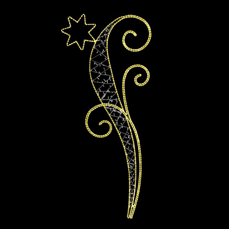 Světelný Kroucený dekor do špičky velký LED 1231 pro vnitřní i venkovní použití příkon 63 W, s výpletem 71 W výška 266 x šířka 117 cm váha 7,2 kg, s výpletem 8,2 kg duralová konstrukce osazena LED světelným kabelem, výplet z LED světelného řetězu  Možnosti (varianty) doplnění: barevné varianty d... celý popis