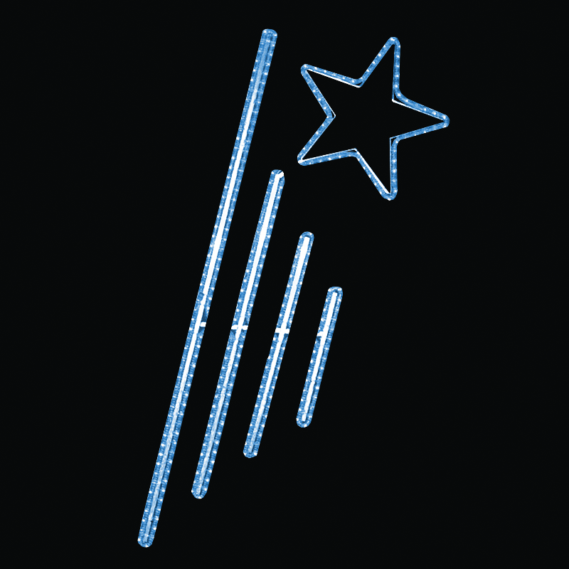 Světelný dekor Čáry s hvězdou malé Kompletní specifikace dekoru: pro vnitřní i venkovní použití příkon 32 W výška 155 x šířka 82 cm váha 3,6 kg  duralová konstrukce osazena LED světelným kabelem Možnosti (varianty) doplnění: barevné varianty dekoru Možnosti umístění dekoru: ozdoba sloupu veřejn... celý popis