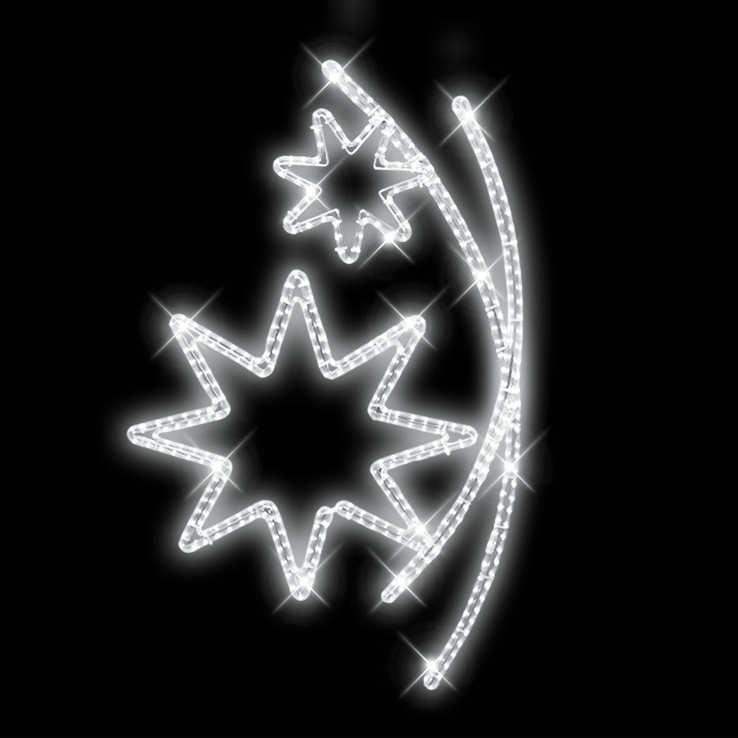 Světelný dekor Hvězdy v oblouku malé LED 1173 pro vnitřní i venkovní použití 2 barvy světelného LED kabelu bez výpletu příkon 42 W, 4,4, kg,  s výpletem příkon 50 W, 5,2 kg  výška 133 x šířka 81 cm duralová konstrukce osazena LED světelným kabelem, výplet z LED světelného řetězu  Možnosti (variant... celý popis