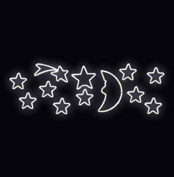 Světelný dekor je osvědčenou součástí vánočních dekorací. Duralová konstrukce je osazena LED světelným kabelem, případně i výpletem z LED řetězů. Na přání může být dekor osazen i barevnou akrylátovou vsadkou.