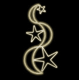 Světelný dekor Pěticípé hvězdy s vlnou pro vnitřní i venkovní použití 2 barvy světelného LED kabelu příkon 63 W výška 220 x šířka 105 cm váha 8,3 kg duralová konstrukce osazena LED světelným kabelem Možnosti (varianty) doplnění: barevné varianty dekoru Možnosti umístění dekoru: ozdoba sloupu v... celý popis