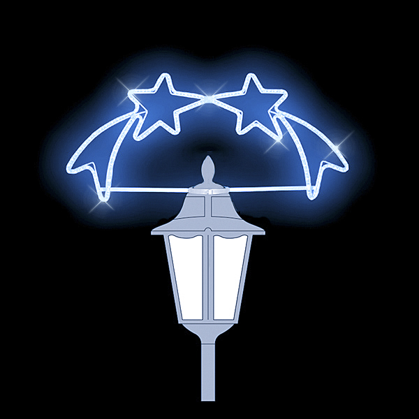 Světelný dekor na lampu Komety krátké pro vnitřní i venkovní použití příkon 14 W výška 51 x šířka 126 cm váha 2,6 kg duralová konstrukce osazena LED světelným kabelem Možnosti (varianty) doplnění: barevné varianty dekoru Možnost umístění dekoru na lampu: ozdoba sloupu veřejného osvětlení - uchy... celý popis