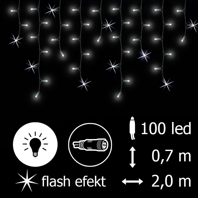 - Světelný rampouch LED-RPLR-F-100 bílá+bílá/čk 0,7m, 100 LED