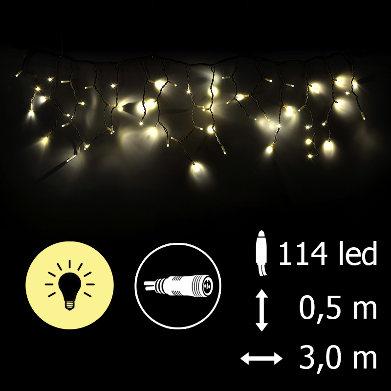 - Světelný rampouch LEDICLR-114 teplá bílá/bk 0,5m, 114 LED