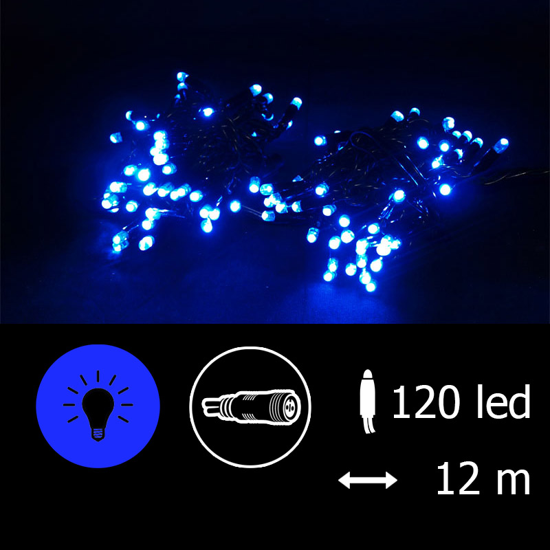 - Světelný řetěz LED-PL-120 modrá/čk 12m, 120 LED