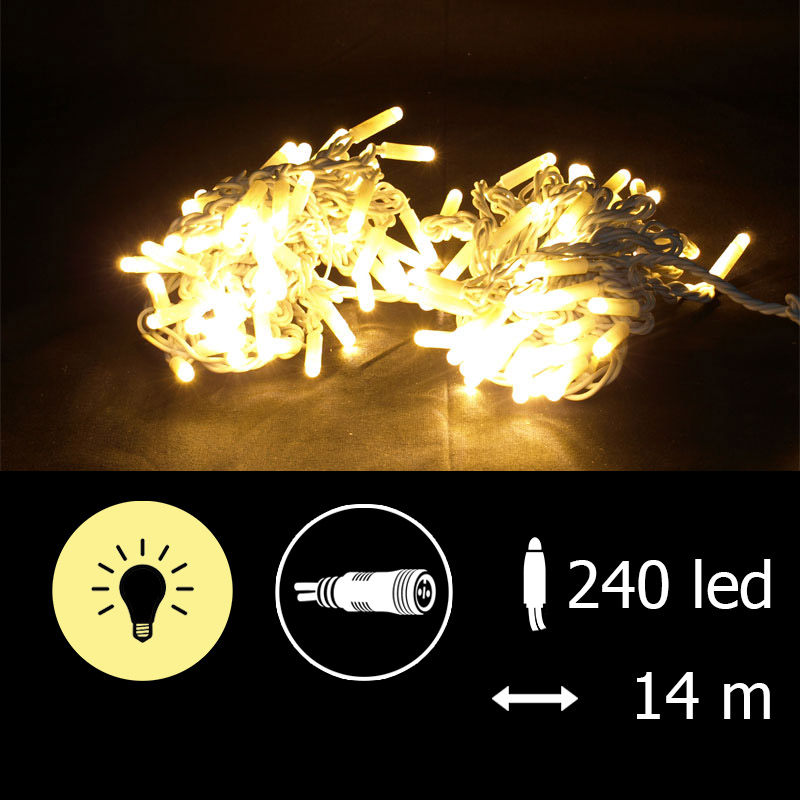 - Světelný řetěz LED-PL-240-14M teplá bílá/BK 14m, 240 LED