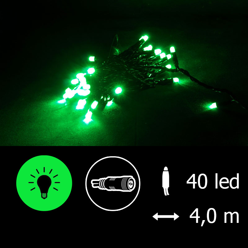 - Světelný řetěz LED-PL-40 zelená/čk 4m, 40 LED