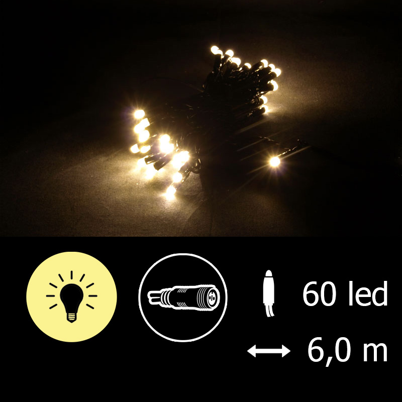 - Světelný řetěz LEDPL-60 teplá bílá/čk (EXTRA) 6m, 60 LED, křížový konektor AKCE výprodej