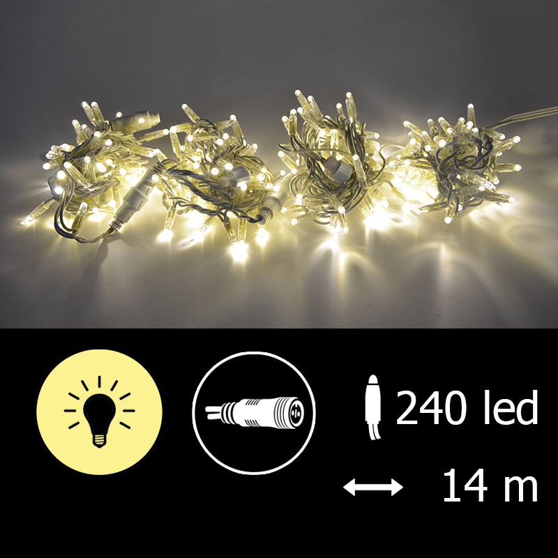 - Světelný řetěz LEDPLR-240-14M teplá bílá/bk 14m, 240 LED