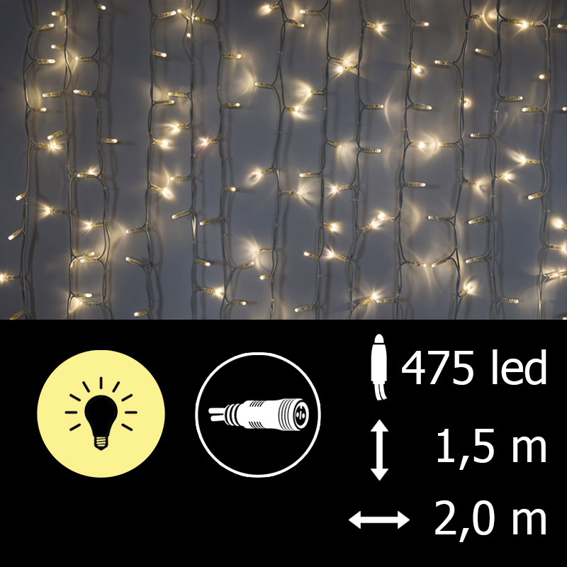- Světelný závěs LED-PLRS-1925 teplá bílá/bk 1,5m, 475 LED