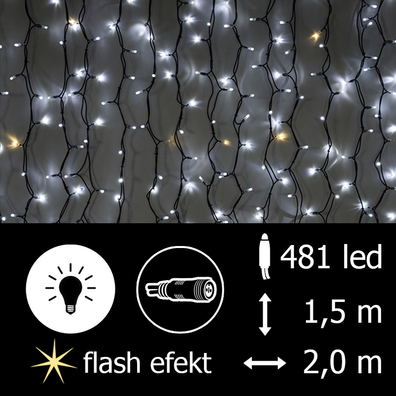 FLASH EFEKT, venkovní, 150x200 cm (VxD), 481 LED, přikon 55,9 W, barva diod bílá+teplá bílá, černý kabel, 220-240 V