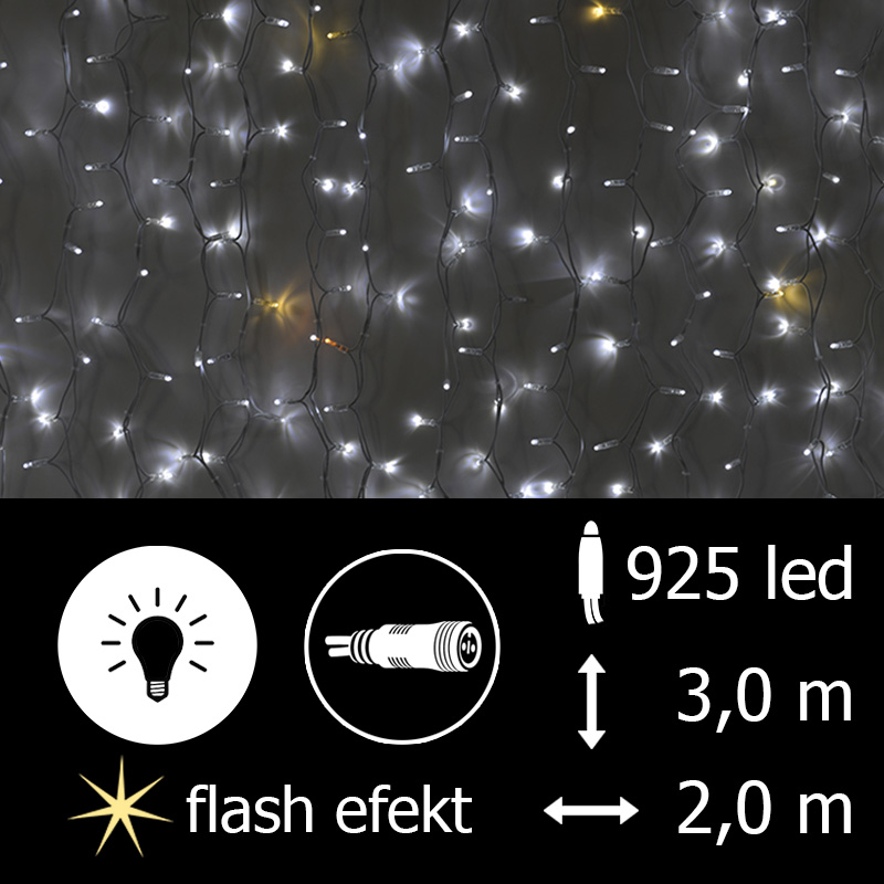 FLASH EFEKT, venkovní, 300x200 cm (VxD), 925 LED, příkon 100,5 W, barva diod bílá+teplá bílá, bílý kabel, 220-240 V